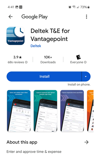These instructions assume you are installing the Deltek Vantagepoint T&E app for the first time from the link provided below. If you have already downloaded the app, then you can skip to Step 2.