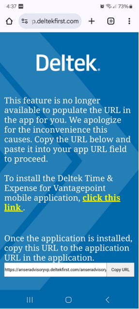 Installation - Mobile Time (Deltek Vantagepoint T&E app)