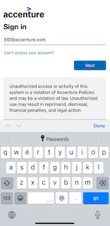 Enter your Accenture email, then select “Sign In” and follow the required authentication processes.